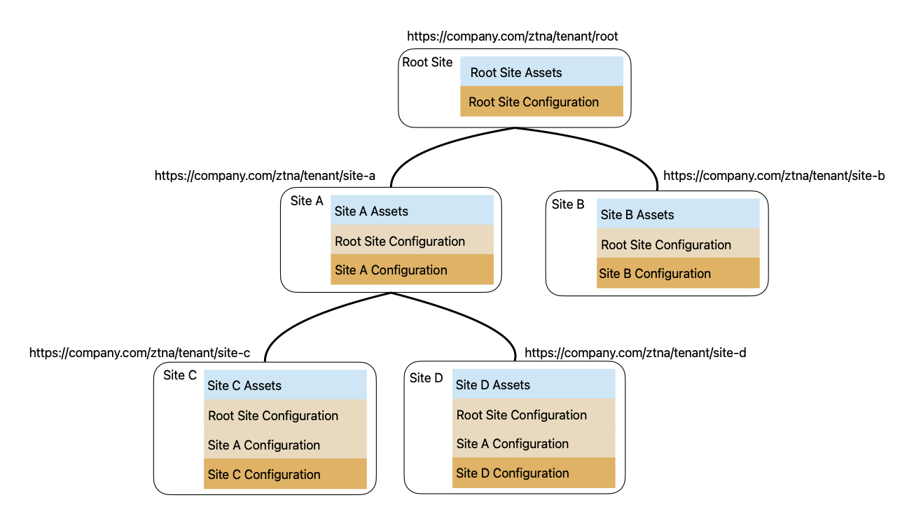 Each tenant has a root site with the URL: https://12port.company.com/ztna/tenant-name/root