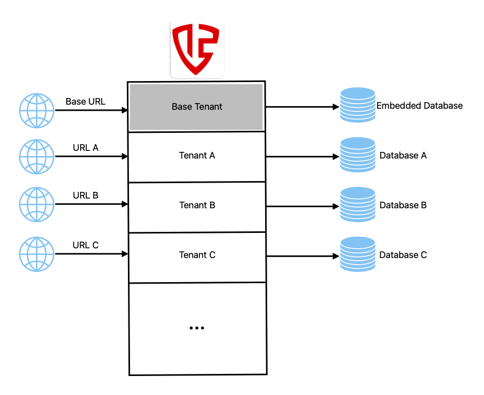 Each deployment includes a Base Tenant, which is always deployed with the embedded database and accessible via the Base tenant URL: