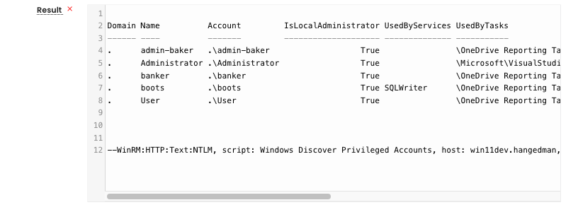 Execute Windows Discover Privileged Accounts script to discover privileged accounts on Windows device.