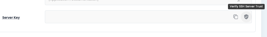 Click the Verify SSH Server Trust button to open the screen to review the public key and to establish the trust with the server.