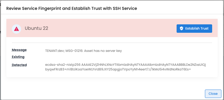 Review the detected public key from the server and click Establish Trust button to establish the trust with the server.