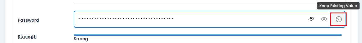 - The default state is to KEEP EXISTING VALUE, so any changes to the other fields will result in the password value remaining the same.