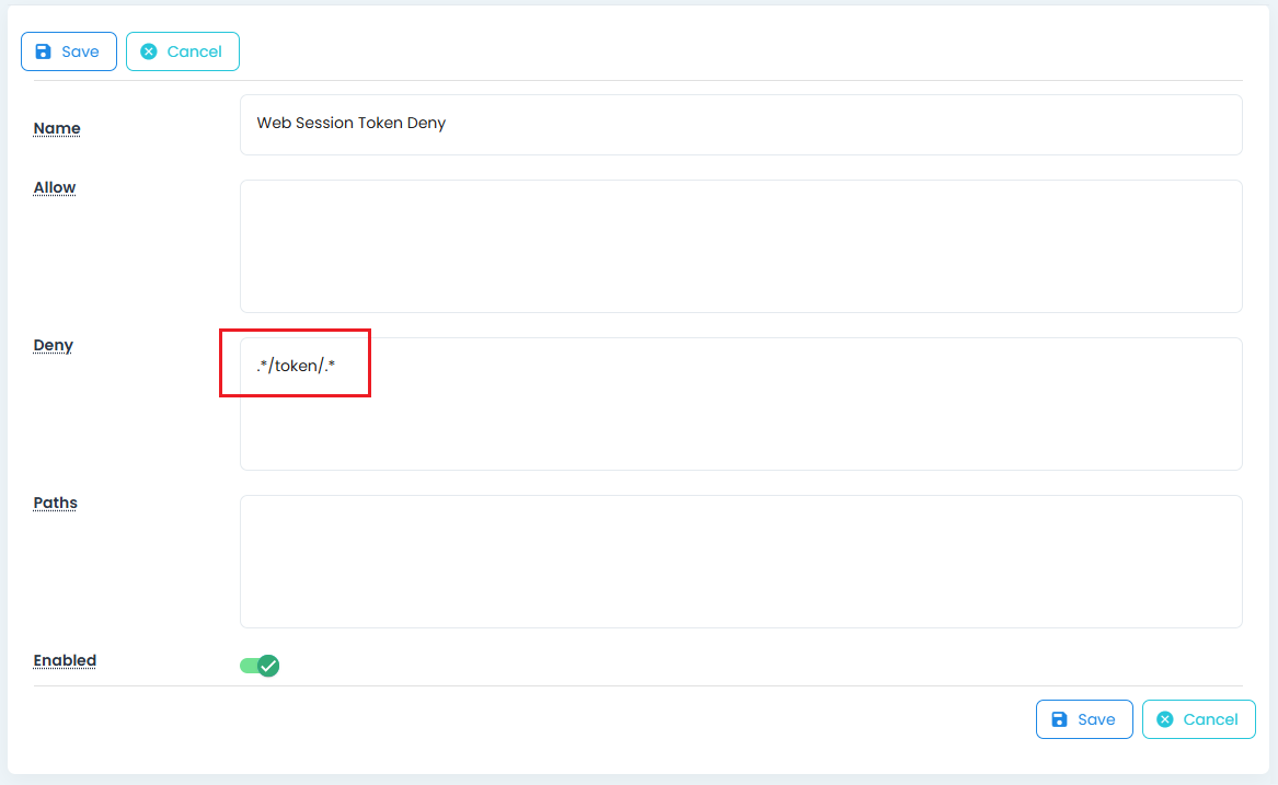 Note: Be sure to test regular expressions for accuracy. Improper syntax or overly broad patterns may lead to unintended access or false denials.