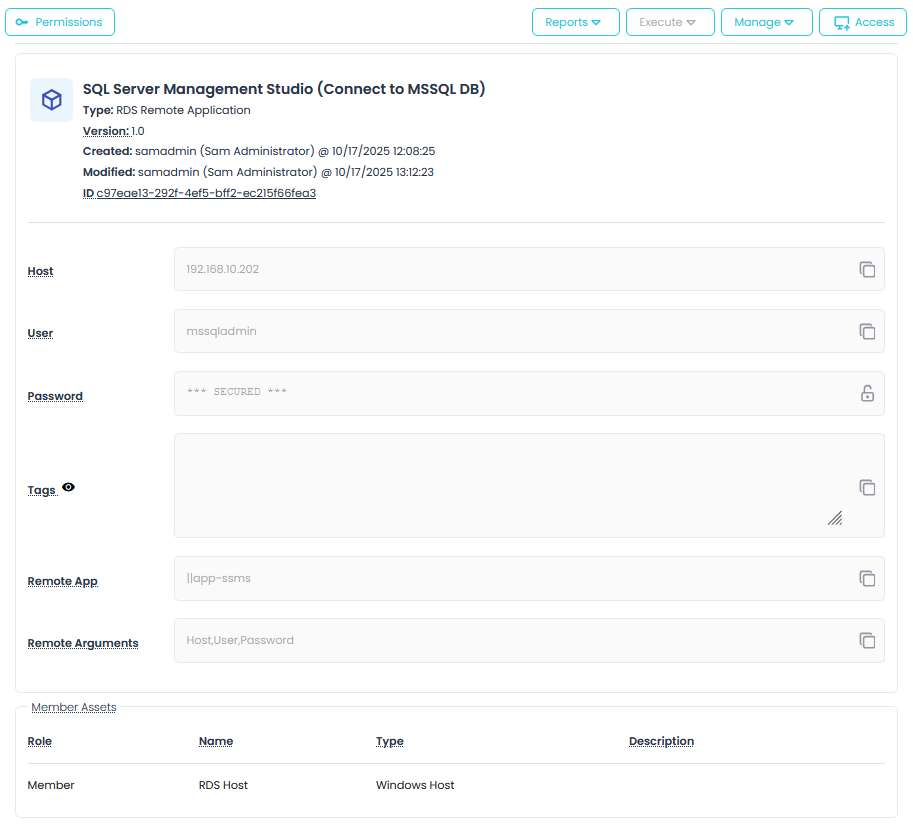 Microsoft SQL Server Management Studio (SSMS) is a Windows-based client application used to manage and interact with Microsoft SQL Server databases. When integrated with the 12Port Access Broker via Remote Desktop Services (RDS), SSMS enables secure, Zero Trust access to SQL Server instances through a fully monitored and credential-injected session. This integration allows users to perform administrative and query operations on SQL databases without direct network exposure or manual credential handling.