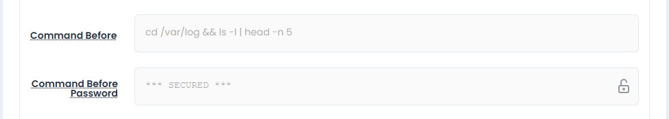 - Enter the appropriate command in the Command Before field and (optionally, if required), the Command Before Password field.