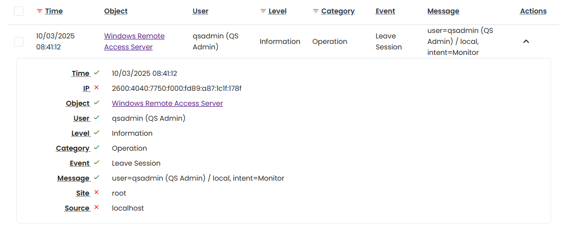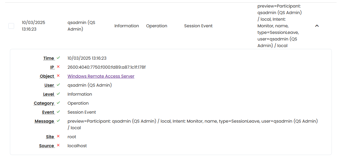 Session Event Log Entry (Leave Session):