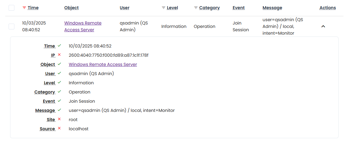 Session Event Log Entry (Join Session):
