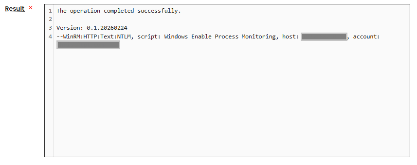 - Execute the command removal task Windows Disable Process Monitoring on the target asset.