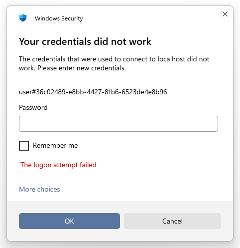 - If you are using a local account on a Windows host, try removing the domain from the username. For example: