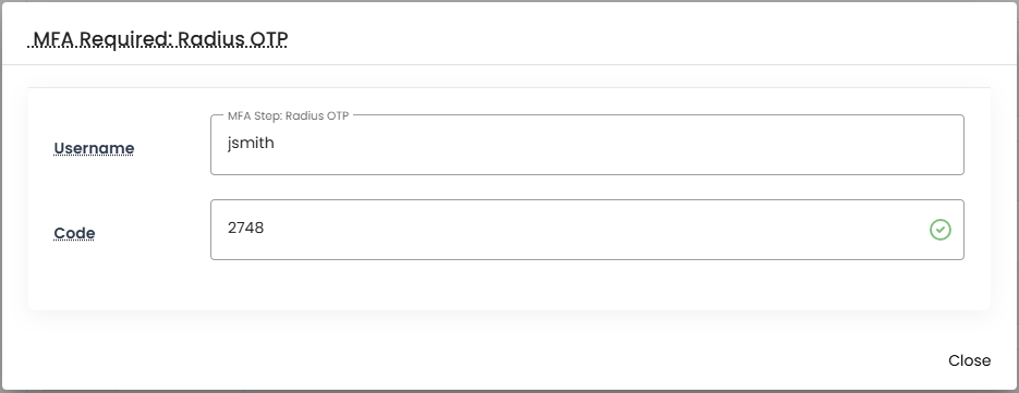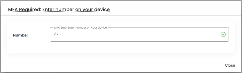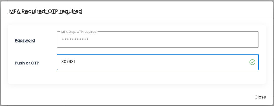 When a Workflow Selector includes the Require MFA requirement, the user performing the action will first be required to successfully respond to a MFA challenge. Depending on their configured MFA provider as defined in the tenant's MFA Rules, this may include entering a OTP (one time password code), responding to a Push notification, entering a number matching value, or another successful challenge response.