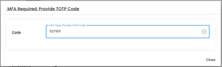 When prompted, enter the TOTP code from your application and click the Confirm button to validate the code.